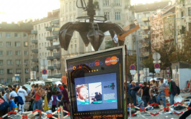 Mit der „Local Crisis Machine“ wird eine Spielmaschine, ein einarmiger Bandit zur Krisenintervention. Aus dem „Münzengrab“ wird ein diskursives Forum, ein Dokumentarprojekt, mit dem man sich die europäische Schuldenkrise erspielen kann: Die klassischen drei Walzen eines umgebauten Spielautomaten zeigen europäische Situationen von der ganz persönlichen Krisenbewältigung mit Beiträgen u.a. aus Wales, Spanien, Rumänien und Deutschland.